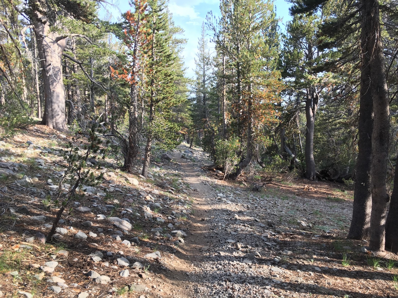 We are on trail and the sky is beginning to lighten as we make our way up the hill towards relay peak.
